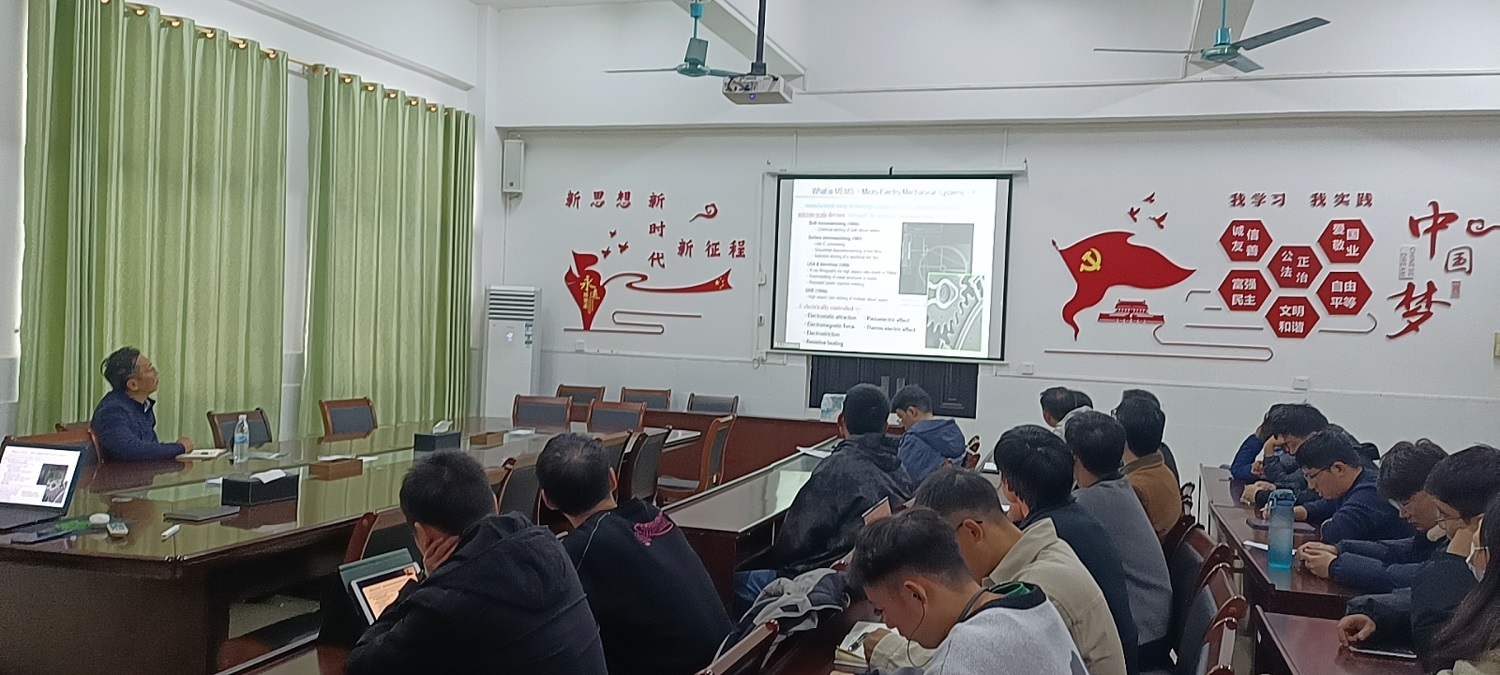 首先,由冯志强教授简要介绍了尤晖教授的工作履历、主要研究方向及科研成果等基本情况,并向大家简单介绍了与会教师。随后,由尤晖教授向大家作了题为“微流控芯片技术及应用”的学术报告。他先简单介绍微纳机电系统研究团队及实验室,然后从MEMS和微流控技术简介、有趣的微流体、生物芯片(微阵列芯片和点样仪、微流控芯片lab-on-a-chip)、基于微流控芯片的生物医疗器械及应用、微流控技术用于机械制造等五个方面展开,重点介绍了微流控器件:微管道、泵、阀、混合器、过滤器、分离器等;微生化反应器;微生化、流体传感器;流体分发系统,比如Ink-jet、microarraying;载微粒流,比如血液、载细胞流;生物芯片等微流控技术内容。之后,与会师生代表积极向尤晖教授提问交流。